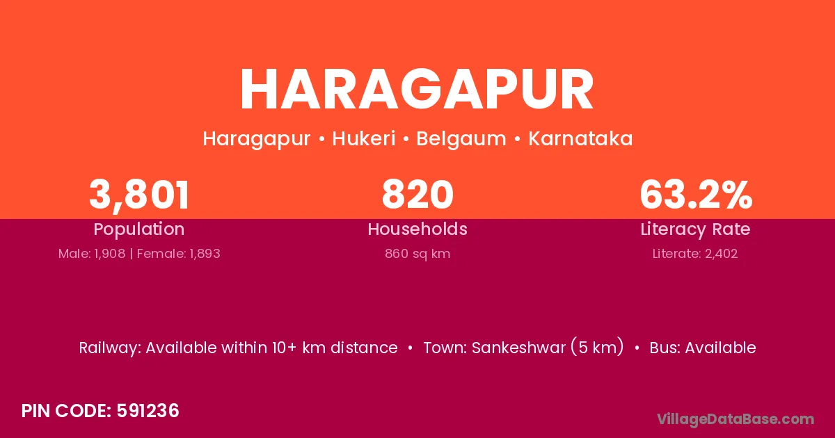 Sankeshwar (5 km) is the nearest town to Haragapur village for major economic activities and is located approximately 5 km away.