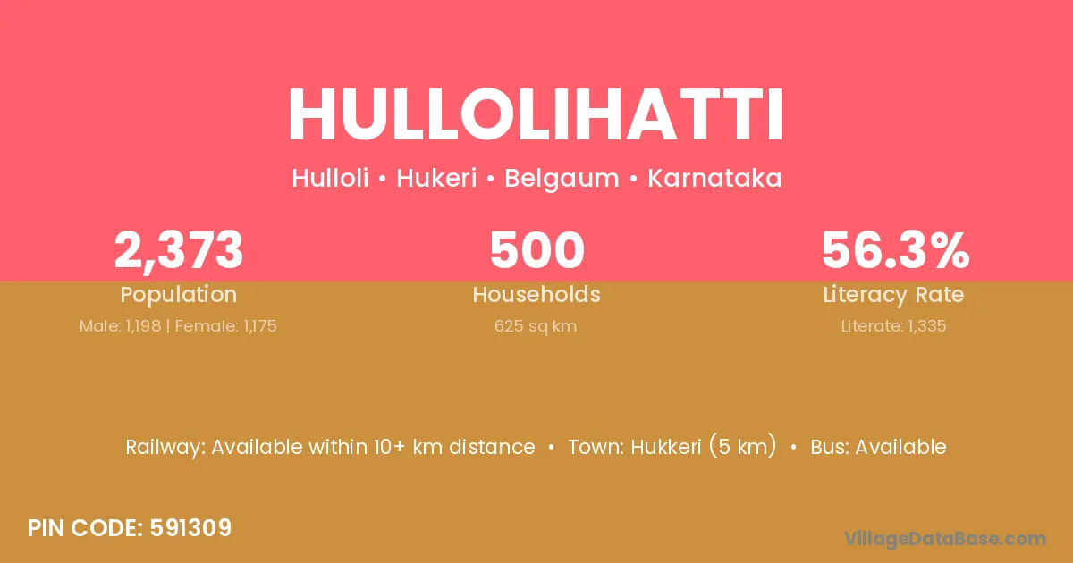 Hukkeri (5 km) is the nearest town to Hullolihatti village for major economic activities and is located approximately 5 km away.