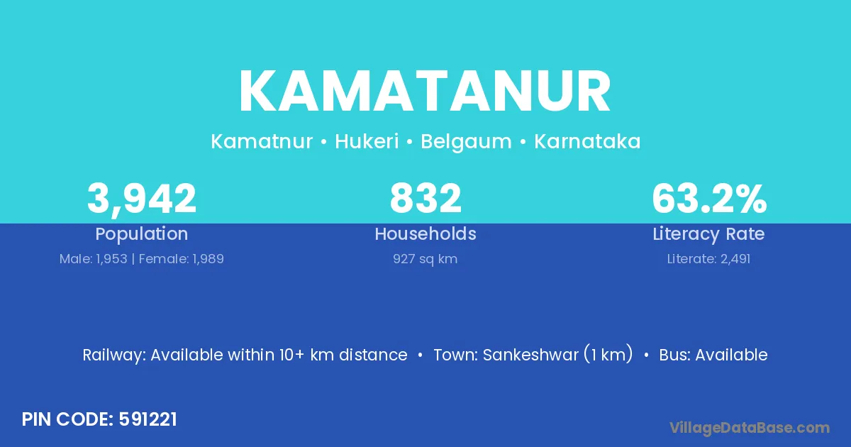 Sankeshwar (1 km) is the nearest town to Kamatanur village for major economic activities and is located approximately 1 km away.