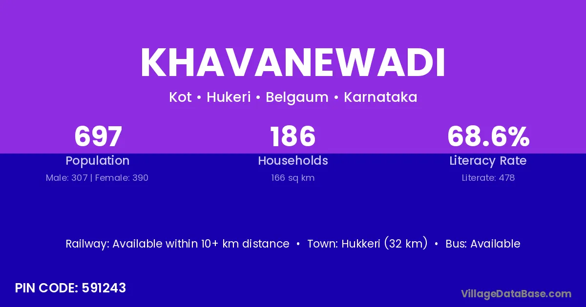 Hukkeri (32 km) is the nearest town to Khavanewadi village for major economic activities and is located approximately 32 km away.
