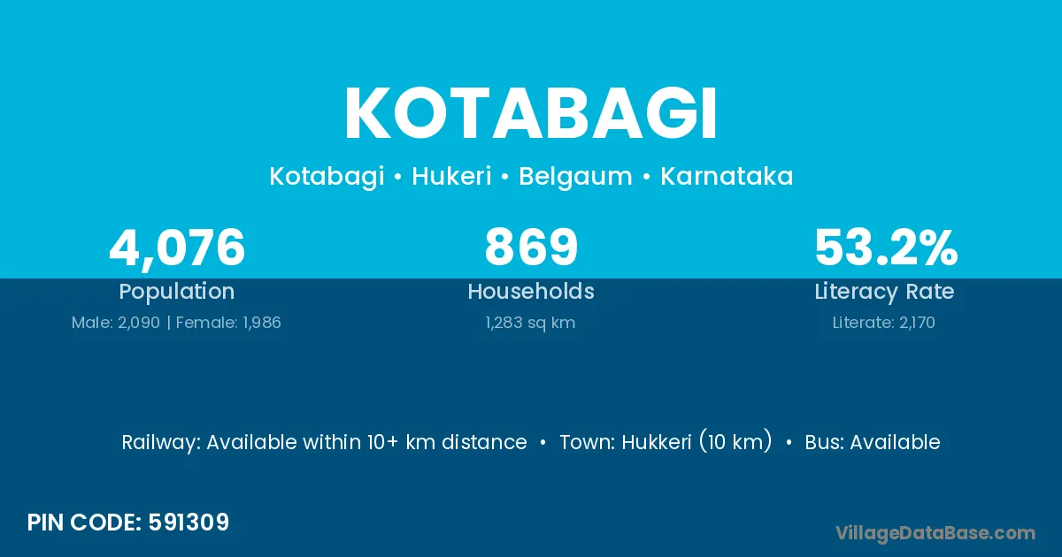 Hukkeri (10 km) is the nearest town to Kotabagi village for major economic activities and is located approximately 10 km away.