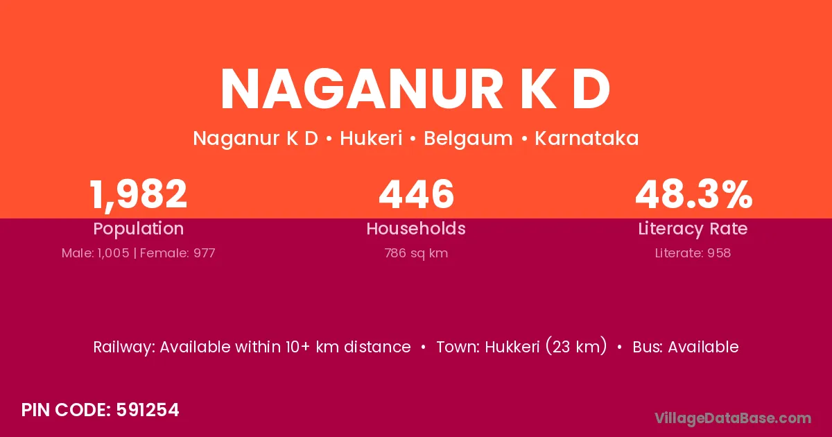 Naganur K D village has a total population of 1,982 people, of which 1,005 are males and 977 are females.