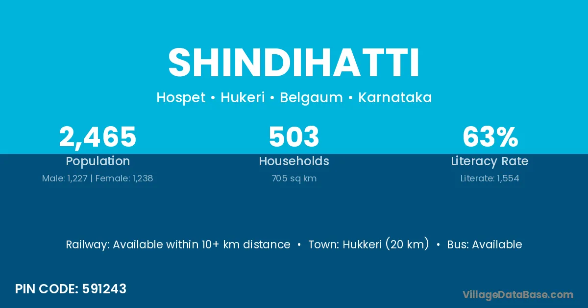 Hukkeri (20 km) is the nearest town to Shindihatti village for major economic activities and is located approximately 20 km away.