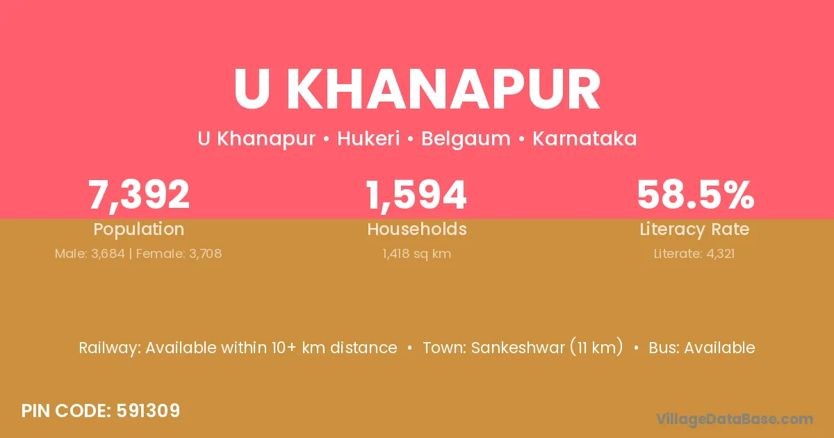 Sankeshwar (11 km) is the nearest town to U Khanapur village for major economic activities and is located approximately 11 km away.