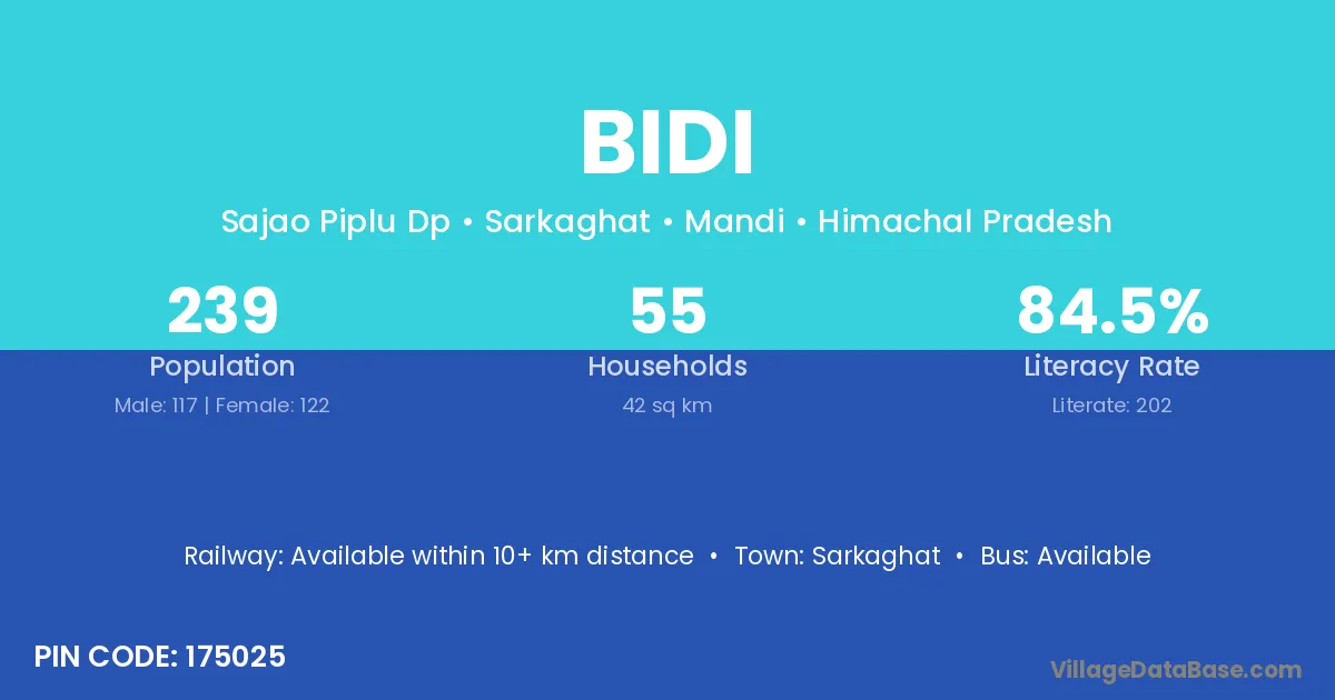 There are approximately 1,025 households in Bidi village.