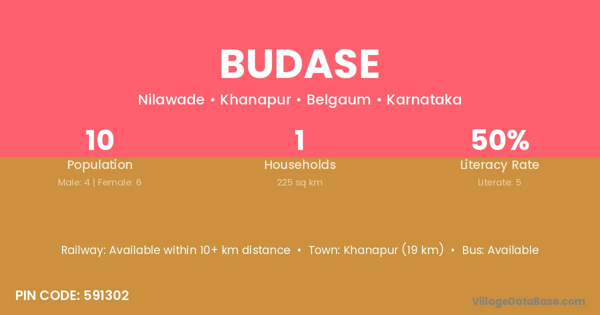 Khanapur (19 km) is the nearest town to Budase village for major economic activities and is located approximately 19 km away.