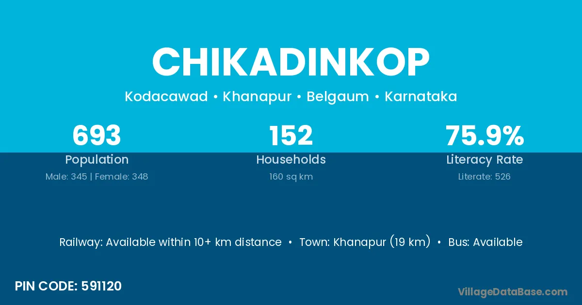 Khanapur (19 km) is the nearest town to Chikadinkop village for major economic activities and is located approximately 19 km away.