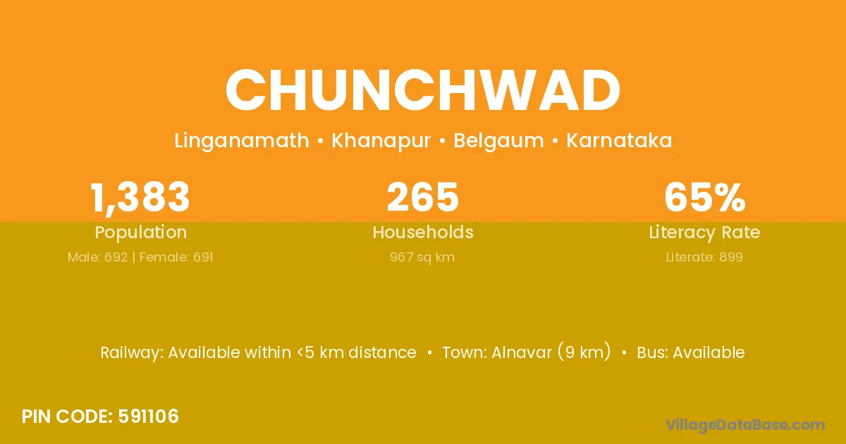 Alnavar (9 km) is the nearest town to Chunchwad village for major economic activities and is located approximately 9 km away.