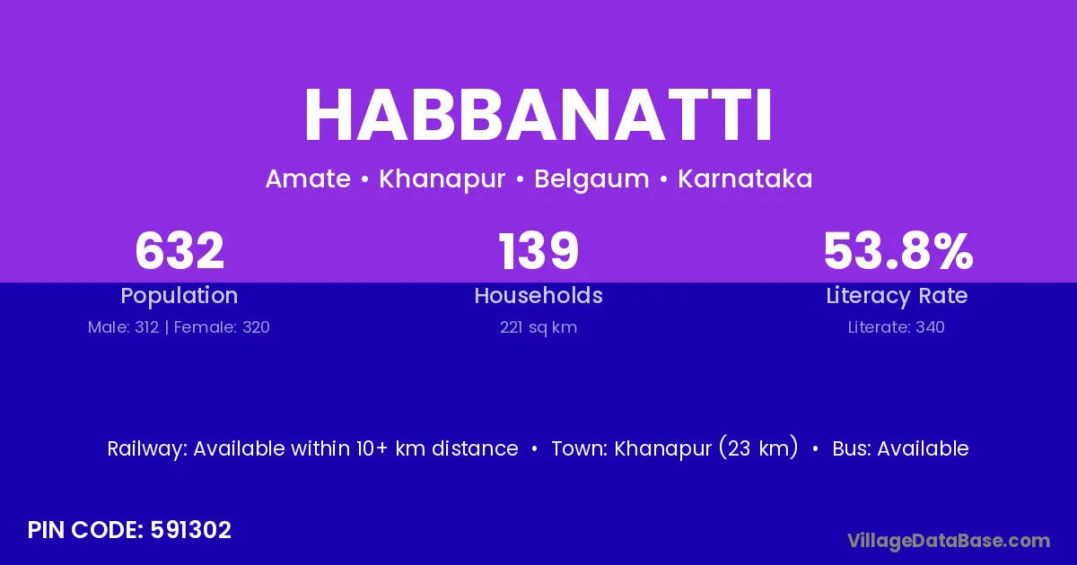 Khanapur (23 km) is the nearest town to Habbanatti village for major economic activities and is located approximately 23 km away.