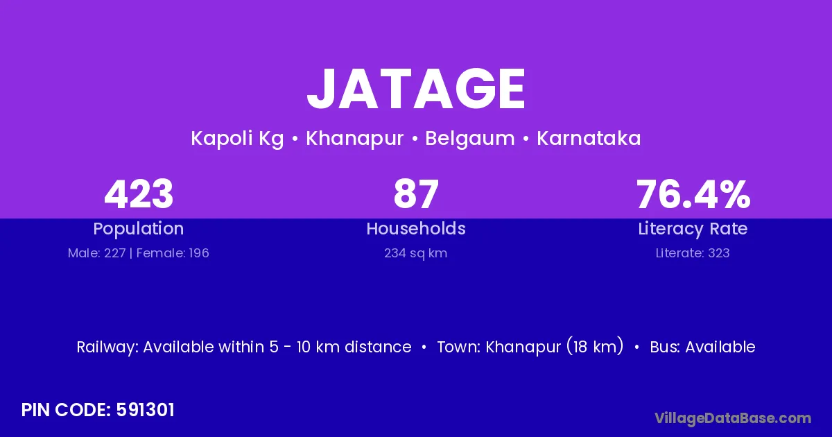 Khanapur (18 km) is the nearest town to Jatage village for major economic activities and is located approximately 18 km away.