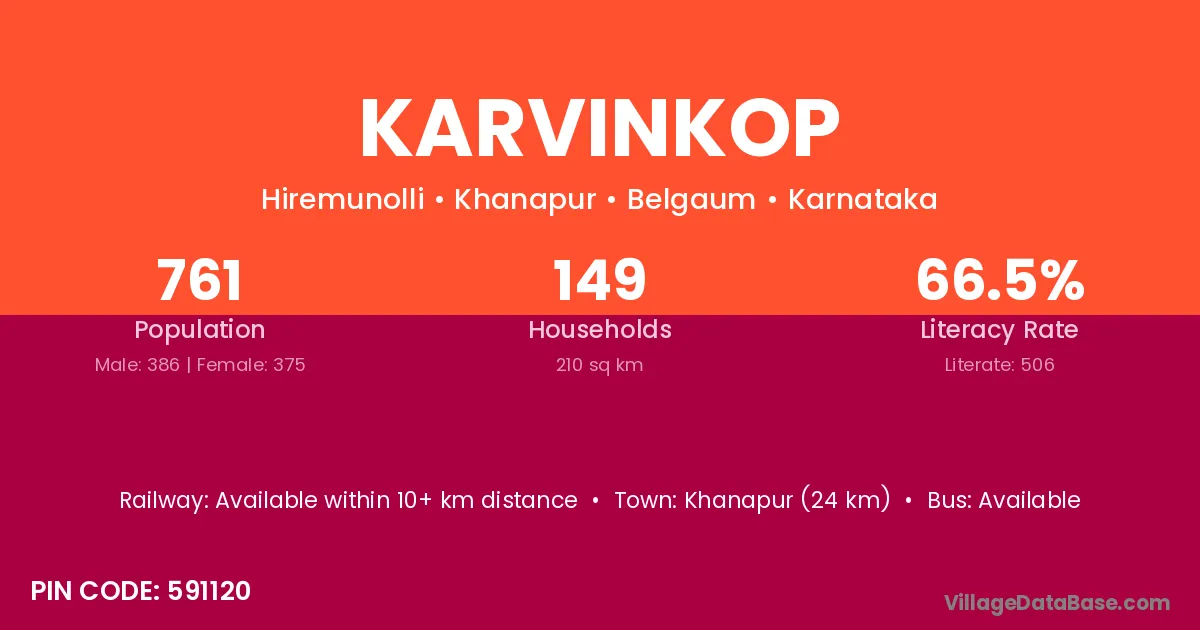 Khanapur (24 km) is the nearest town to Karvinkop village for major economic activities and is located approximately 24 km away.