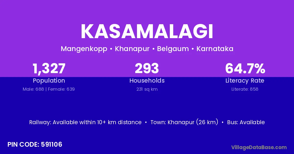 Khanapur (26 km) is the nearest town to Kasamalagi village for major economic activities and is located approximately 26 km away.