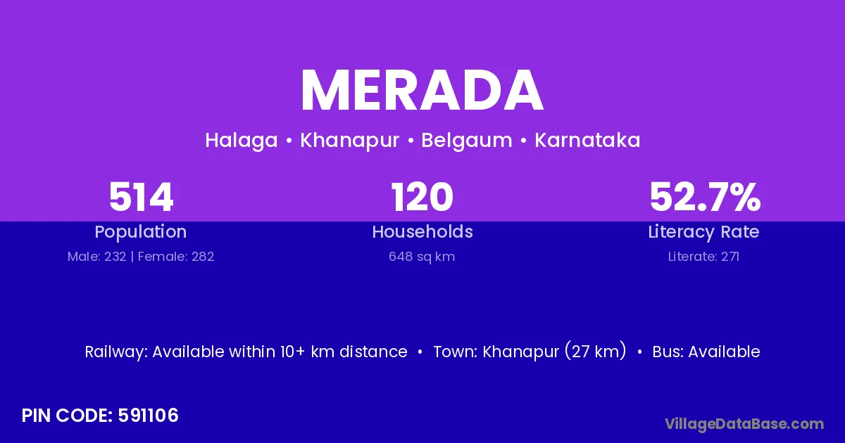 Khanapur (27 km) is the nearest town to Merada village for major economic activities and is located approximately 27 km away.