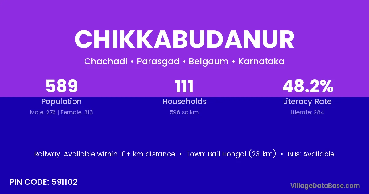 Bail Hongal (23 km) is the nearest town to Chikkabudanur village for major economic activities and is located approximately 23 km away.
