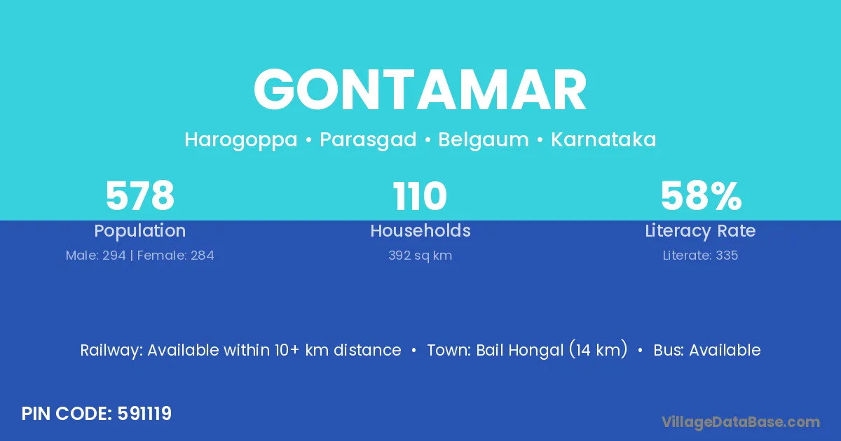 Bail Hongal (14 km) is the nearest town to Gontamar village for major economic activities and is located approximately 14 km away.
