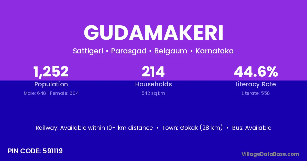 Gokak (28 km) is the nearest town to Gudamakeri village for major economic activities and is located approximately 28 km away.