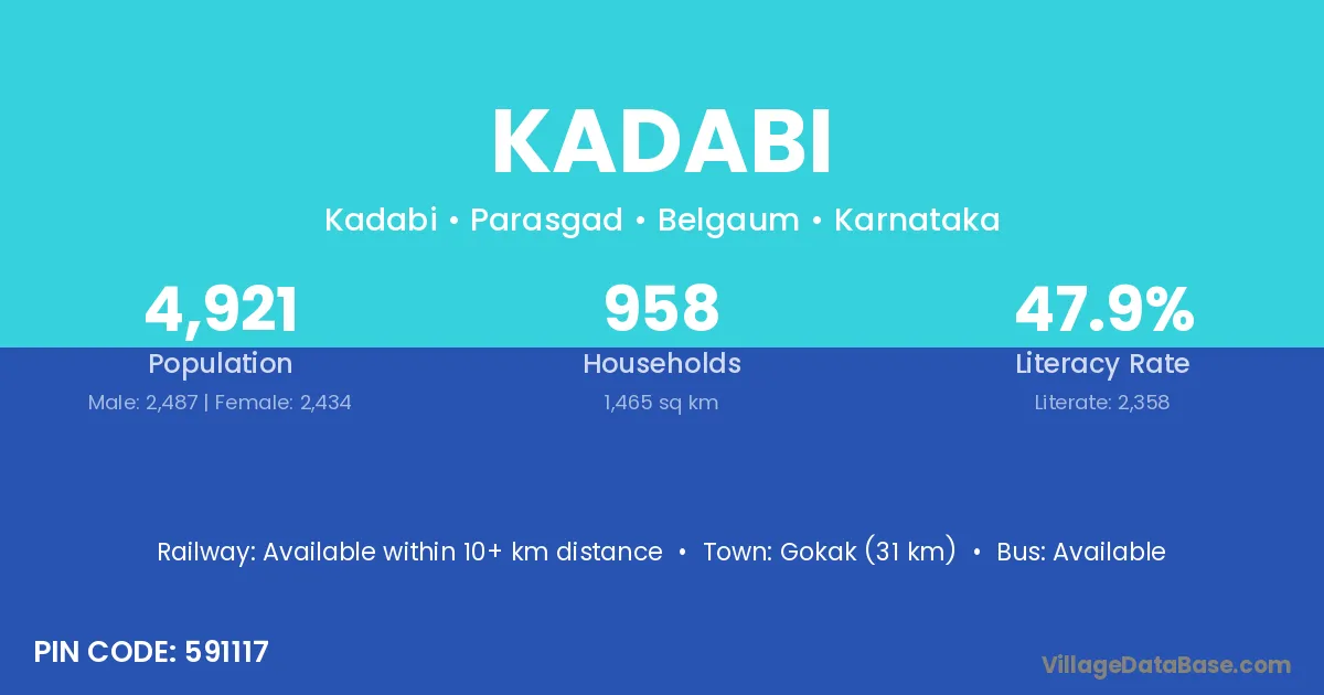 Gokak (31 km) is the nearest town to Kadabi village for major economic activities and is located approximately 31 km away.