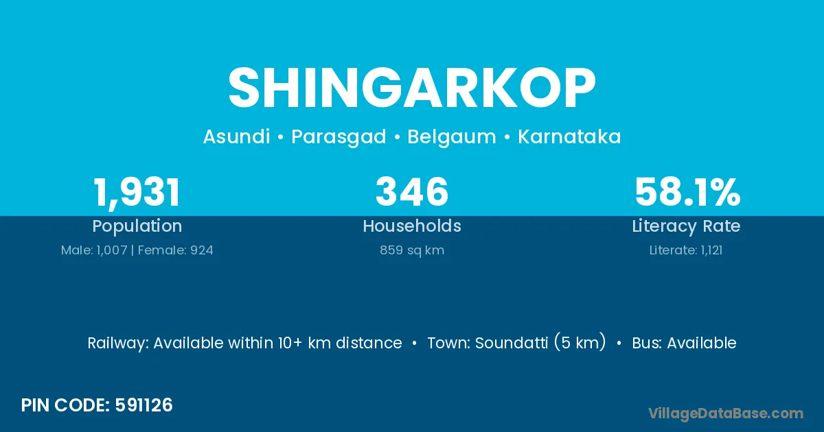 Soundatti (5 km) is the nearest town to Shingarkop village for major economic activities and is located approximately 5 km away.