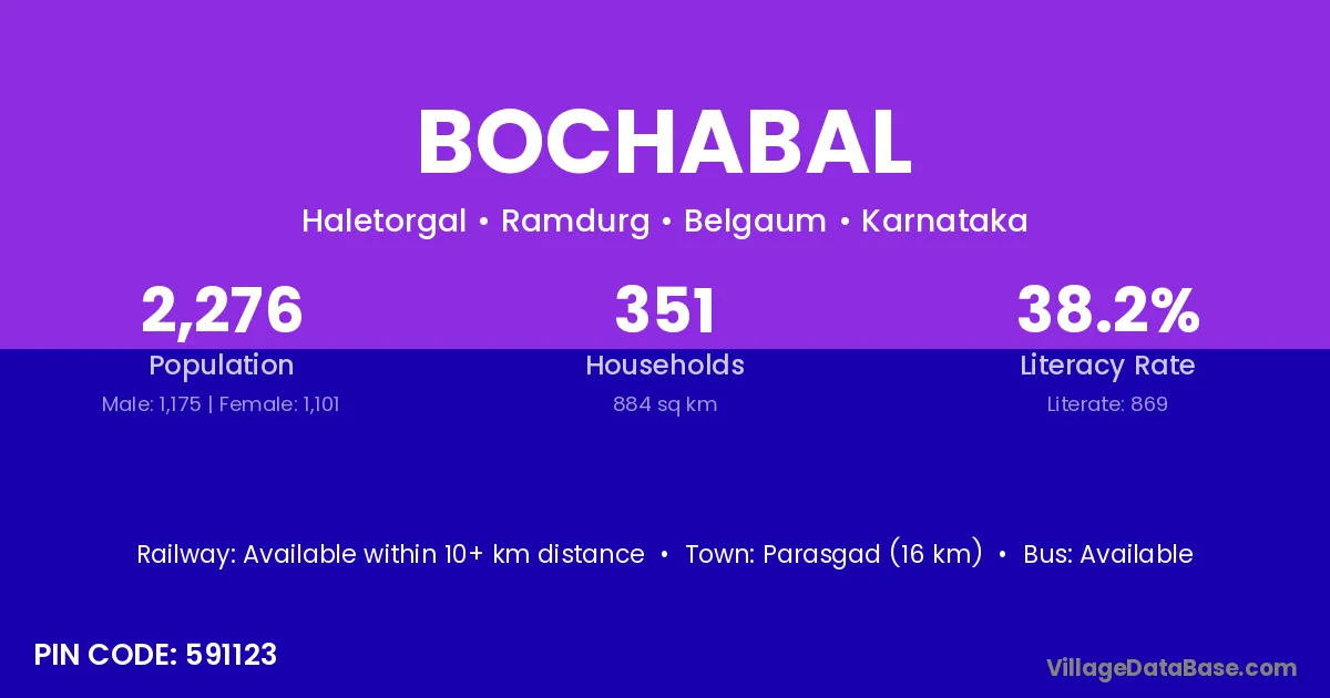 According to Census 2011 information, the village code of Bochabal village is 591123.