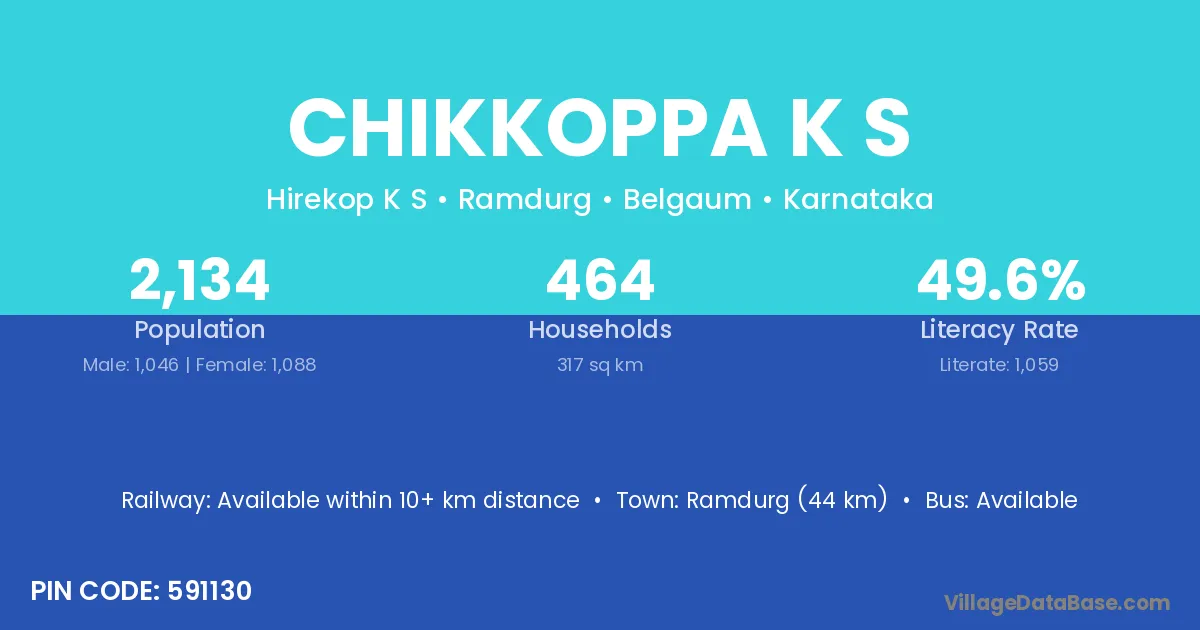 Ramdurg (44 km) is the nearest town to Chikkoppa K S village for major economic activities and is located approximately 44 km away.