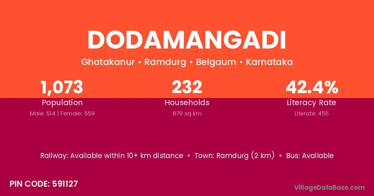 Ramdurg (2 km) is the nearest town to Dodamangadi village for major economic activities and is located approximately 2 km away.