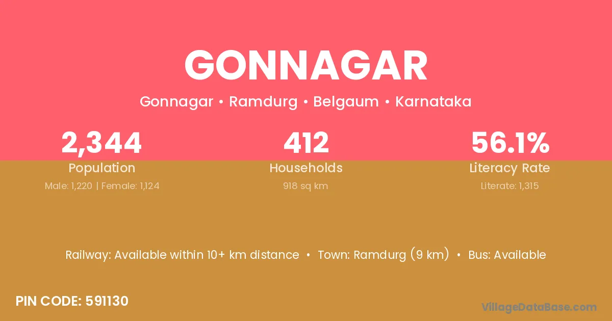 Ramdurg (9 km) is the nearest town to Gonnagar village for major economic activities and is located approximately 9 km away.