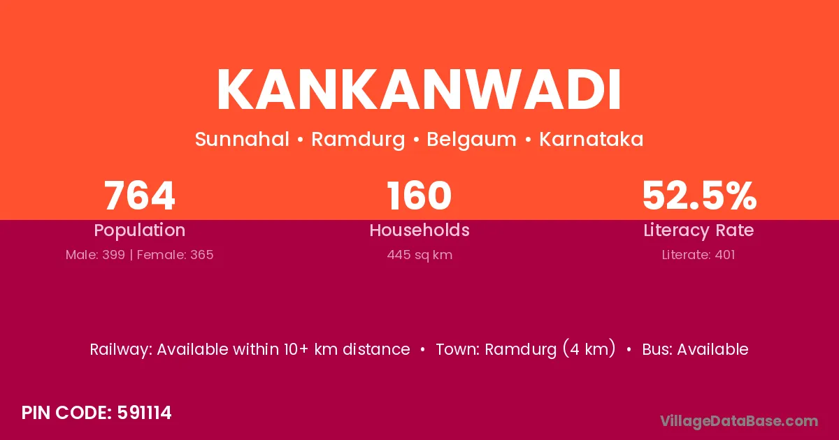 Ramdurg (4 km) is the nearest town to Kankanwadi village for major economic activities and is located approximately 4 km away.