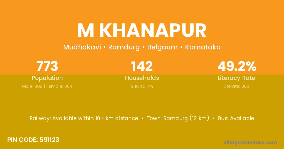 Ramdurg (12 km) is the nearest town to M Khanapur village for major economic activities and is located approximately 12 km away.