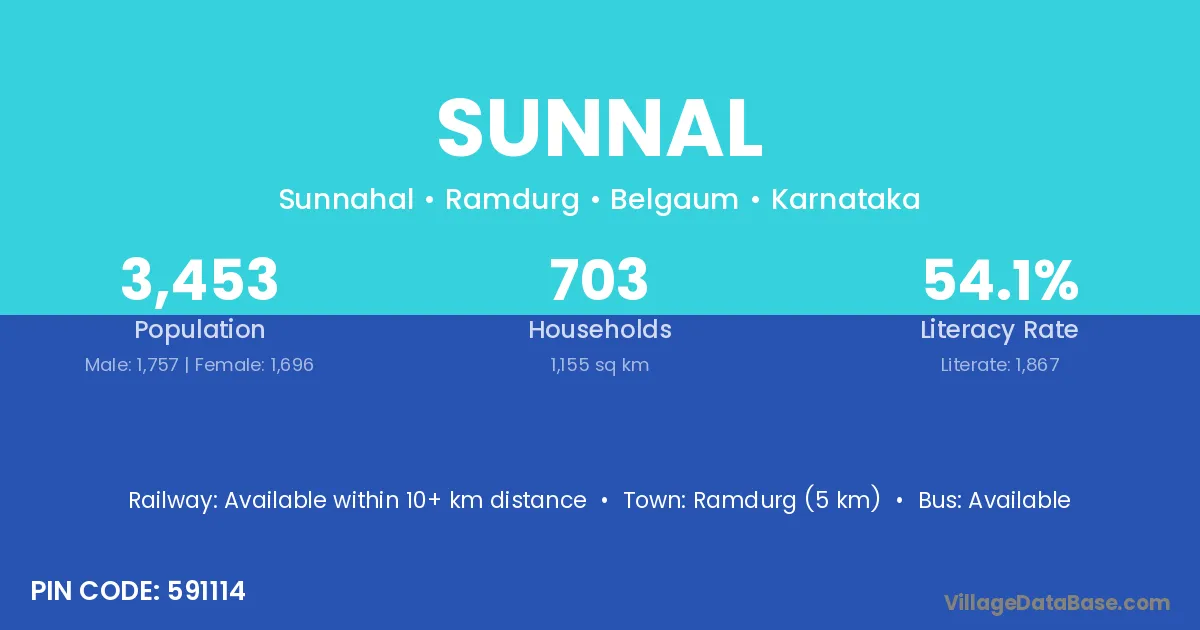 Ramdurg (5 km) is the nearest town to Sunnal village for major economic activities and is located approximately 5 km away.