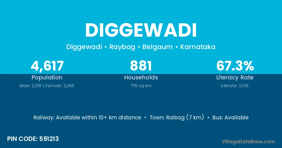 Raibag (7 km) is the nearest town to Diggewadi village for major economic activities and is located approximately 7 km away.
