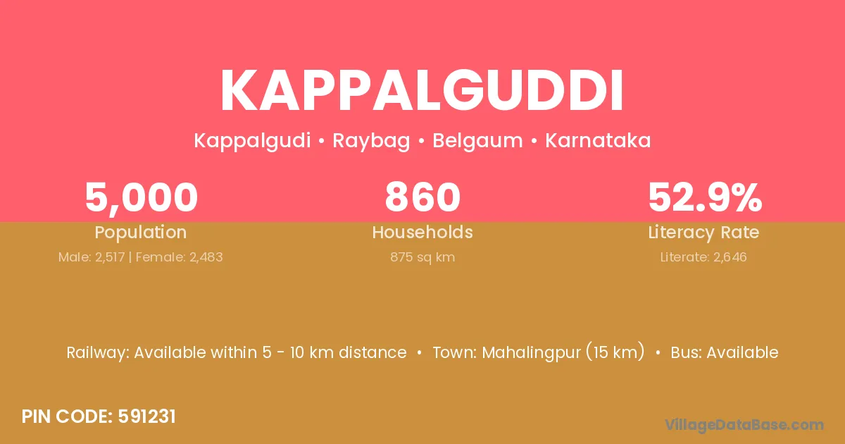 Kappalguddi village has a total population of 5,000 people, of which 2,517 are males and 2,483 are females.