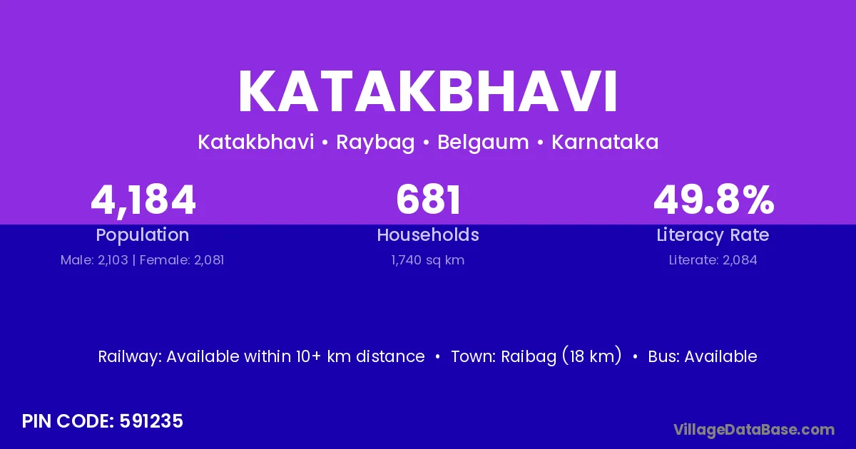 Raibag (18 km) is the nearest town to Katakbhavi village for major economic activities and is located approximately 18 km away.