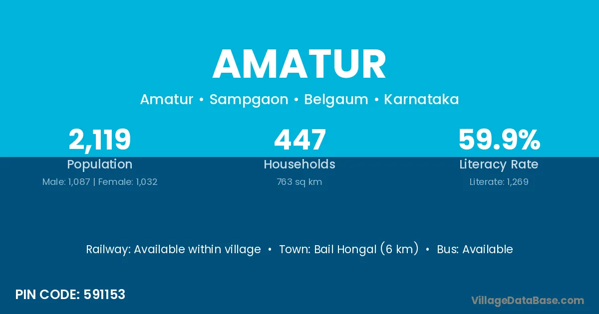 Bail Hongal (6 km) is the nearest town to Amatur village for major economic activities and is located approximately 6 km away.
