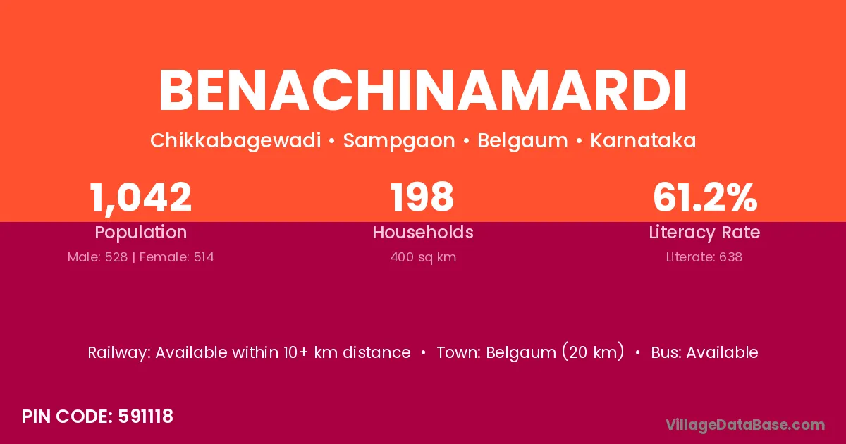 Benachinamardi village has a total population of 1,042 people, of which 528 are males and 514 are females.