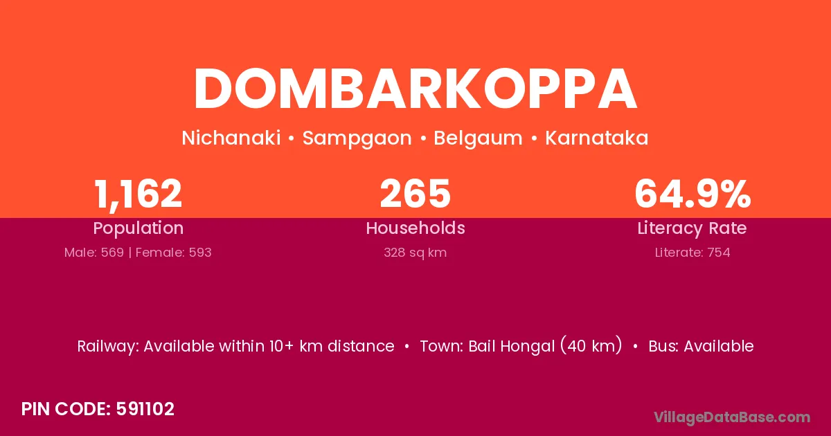 Bail Hongal (40 km) is the nearest town to Dombarkoppa village for major economic activities and is located approximately 40 km away.