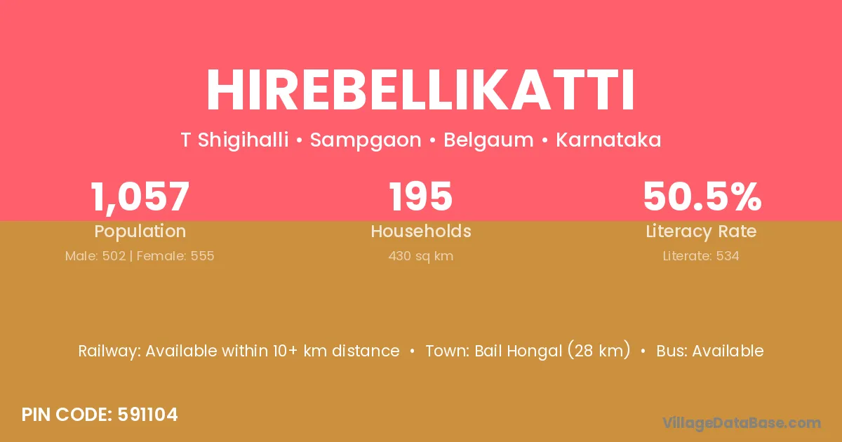 Hirebellikatti village has a total population of 1,057 people, of which 502 are males and 555 are females.