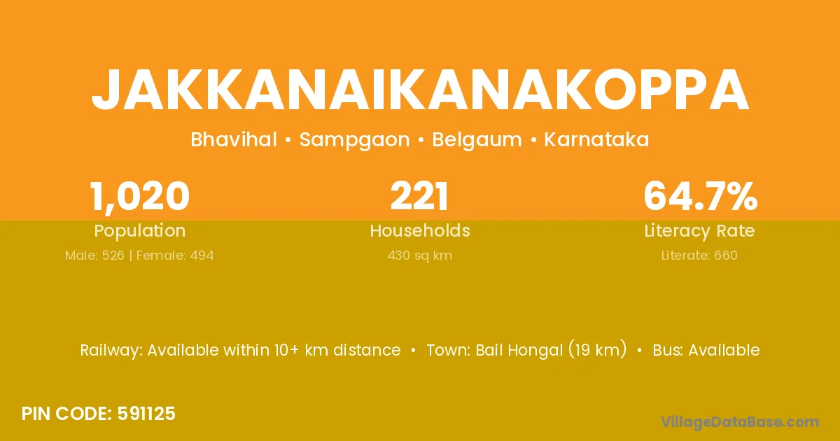 Bail Hongal (19 km) is the nearest town to Jakkanaikanakoppa village for major economic activities and is located approximately 19 km away.