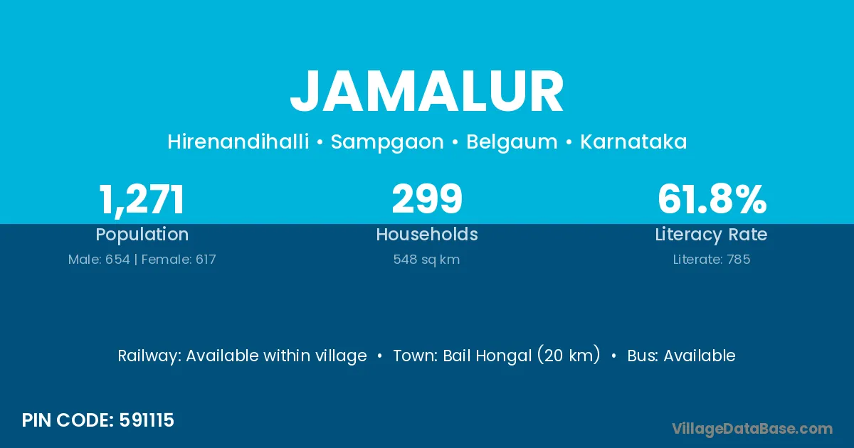 Bail Hongal (20 km) is the nearest town to Jamalur village for major economic activities and is located approximately 20 km away.