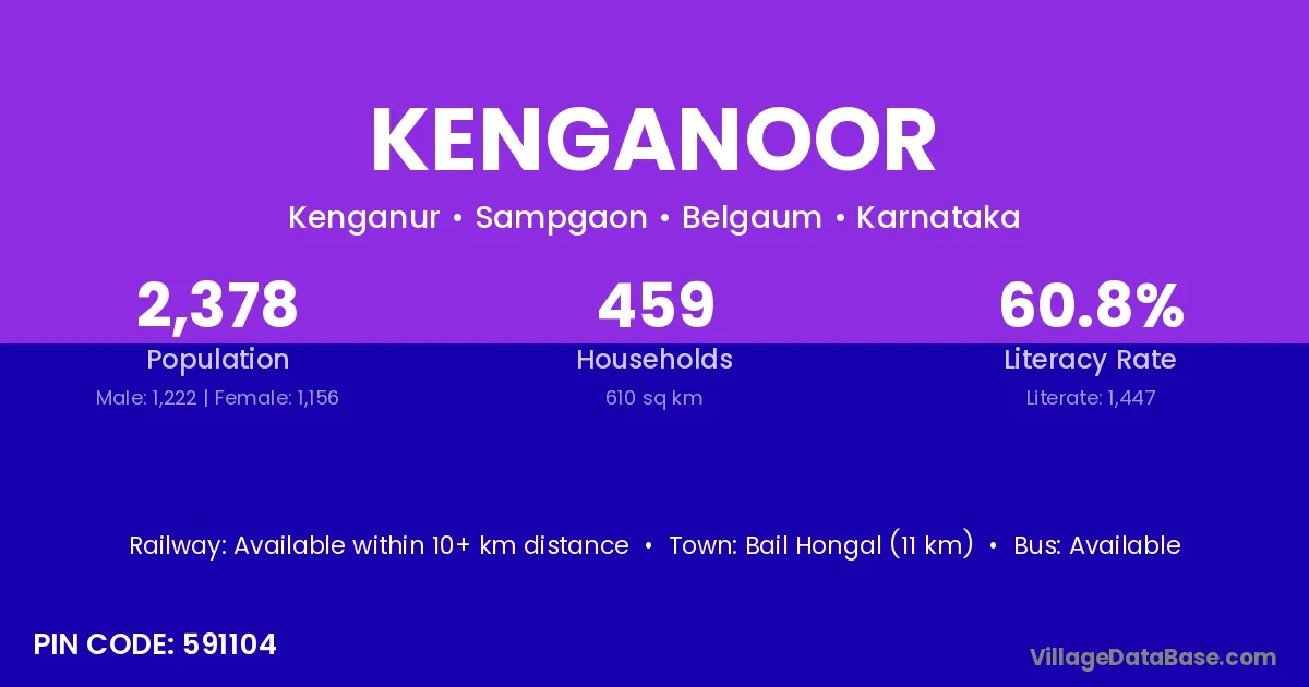 Bail Hongal (11 km) is the nearest town to Kenganoor village for major economic activities and is located approximately 11 km away.