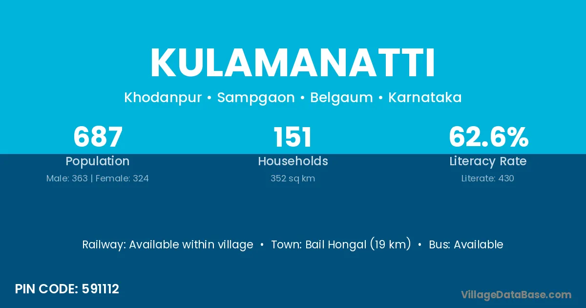 Bail Hongal (19 km) is the nearest town to Kulamanatti village for major economic activities and is located approximately 19 km away.