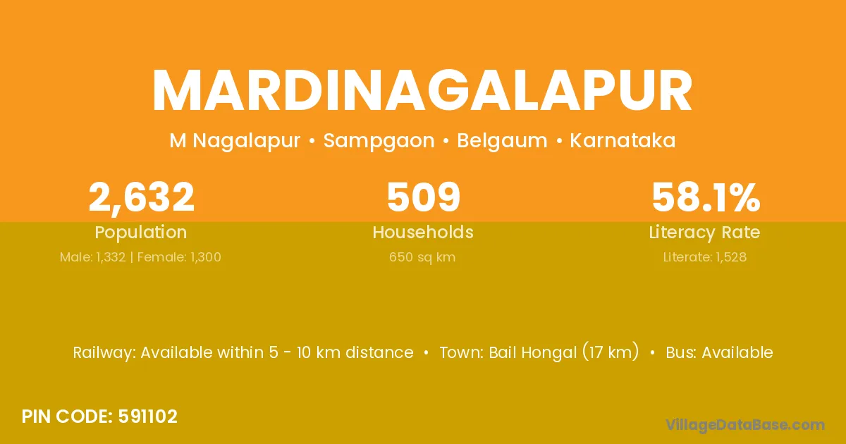 Bail Hongal (17 km) is the nearest town to Mardinagalapur village for major economic activities and is located approximately 17 km away.