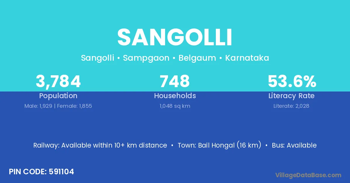 Bail Hongal (16 km) is the nearest town to Sangolli village for major economic activities and is located approximately 16 km away.