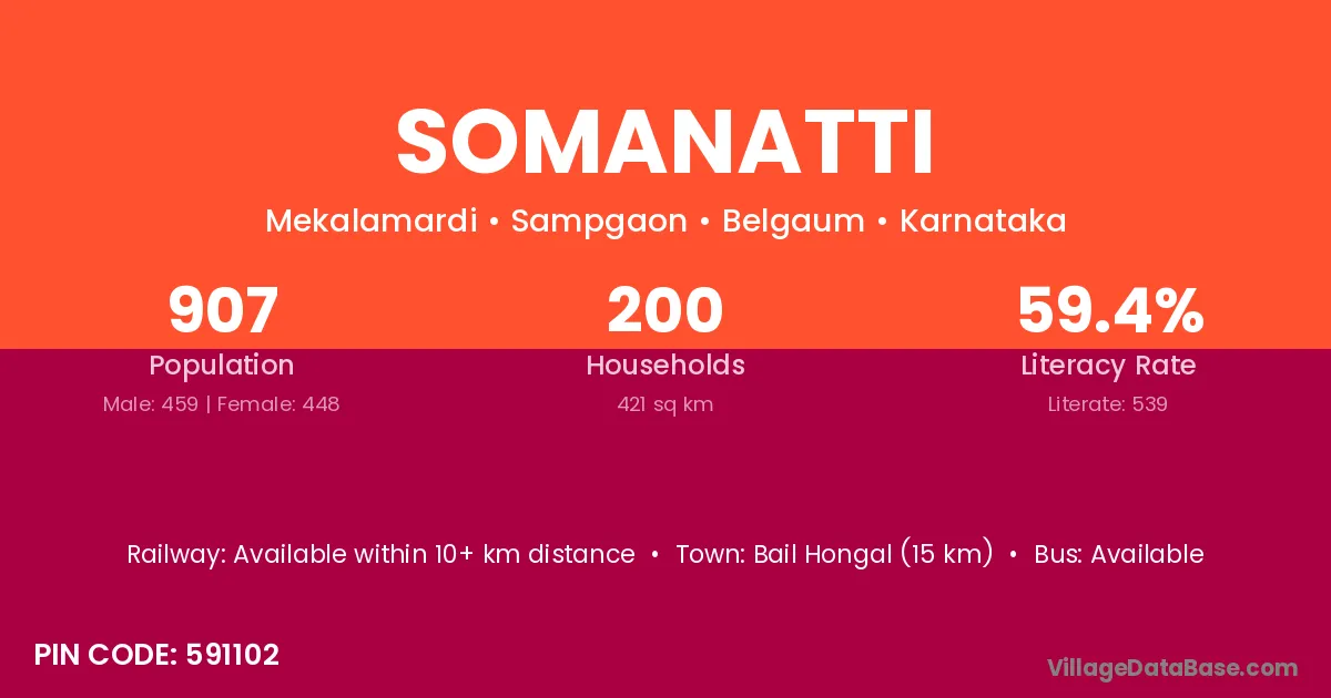 Bail Hongal (15 km) is the nearest town to Somanatti village for major economic activities and is located approximately 15 km away.
