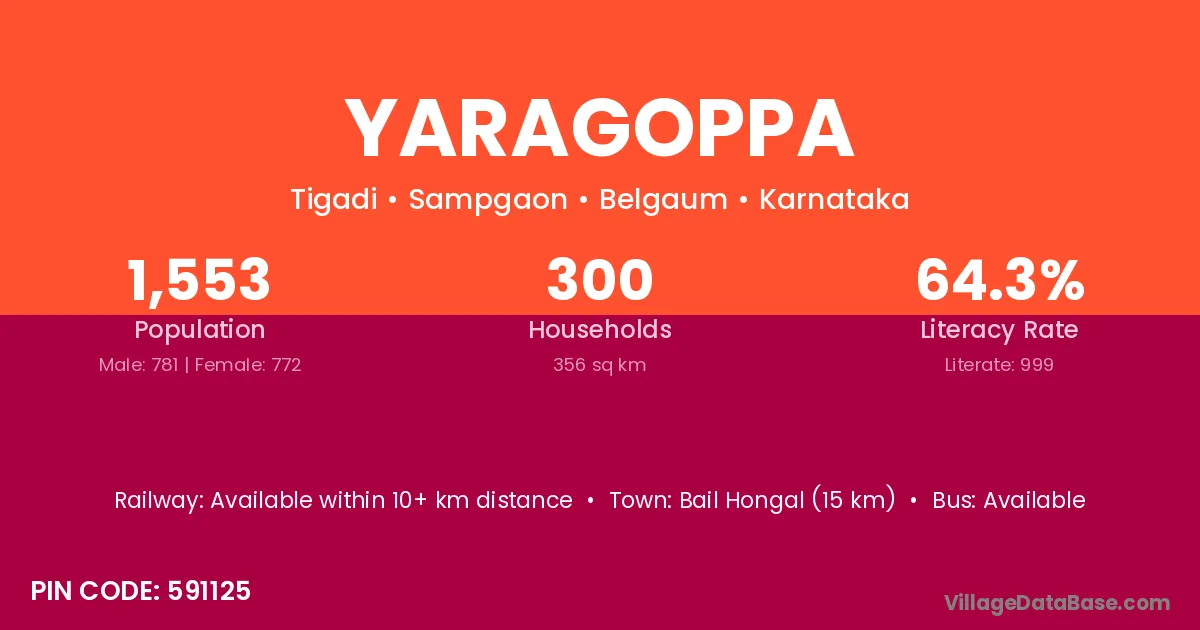 Bail Hongal (15 km) is the nearest town to Yaragoppa village for major economic activities and is located approximately 15 km away.