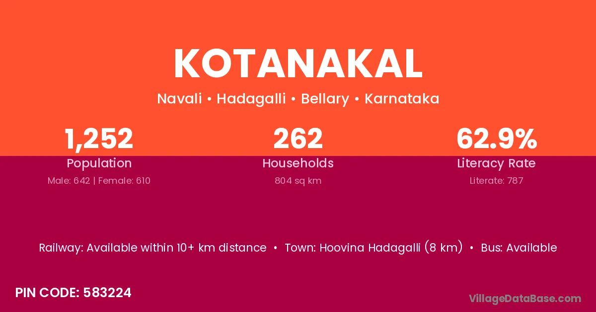 Kotanakal village has a total population of 1,252 people, of which 642 are males and 610 are females.