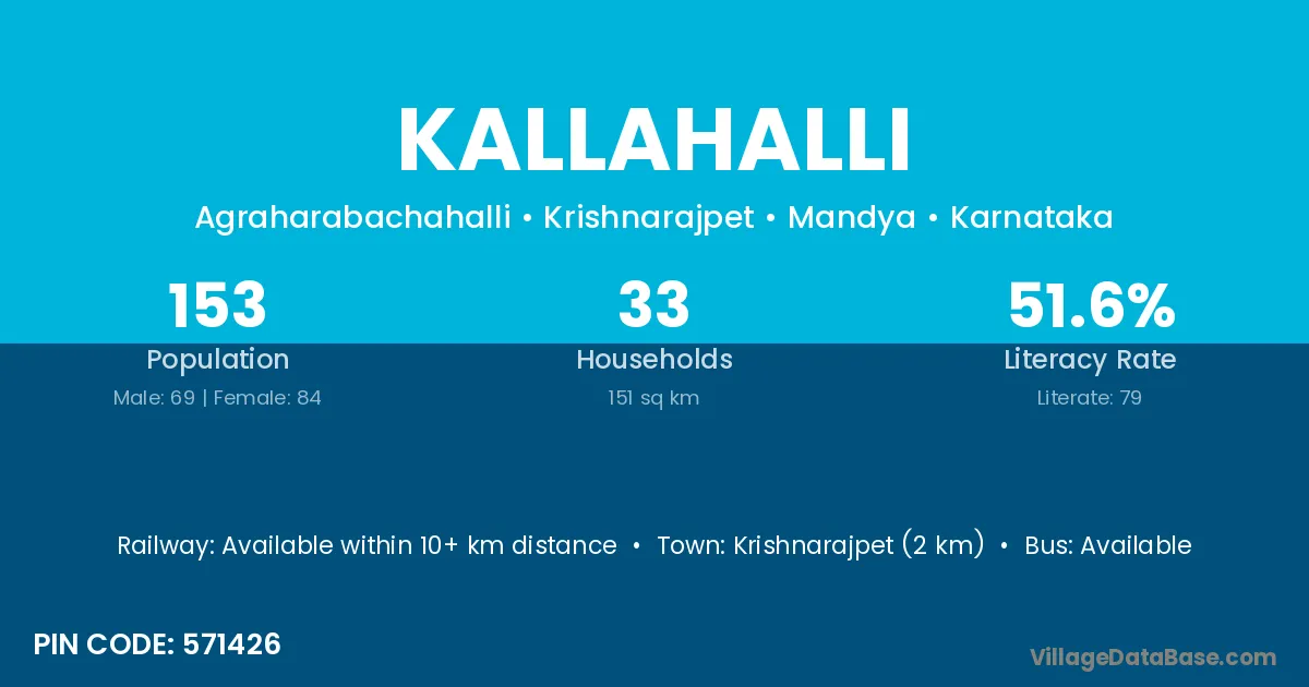 Kudligi (18 km) is the nearest town to Kallahalli village for major economic activities and is located approximately 18 km away.