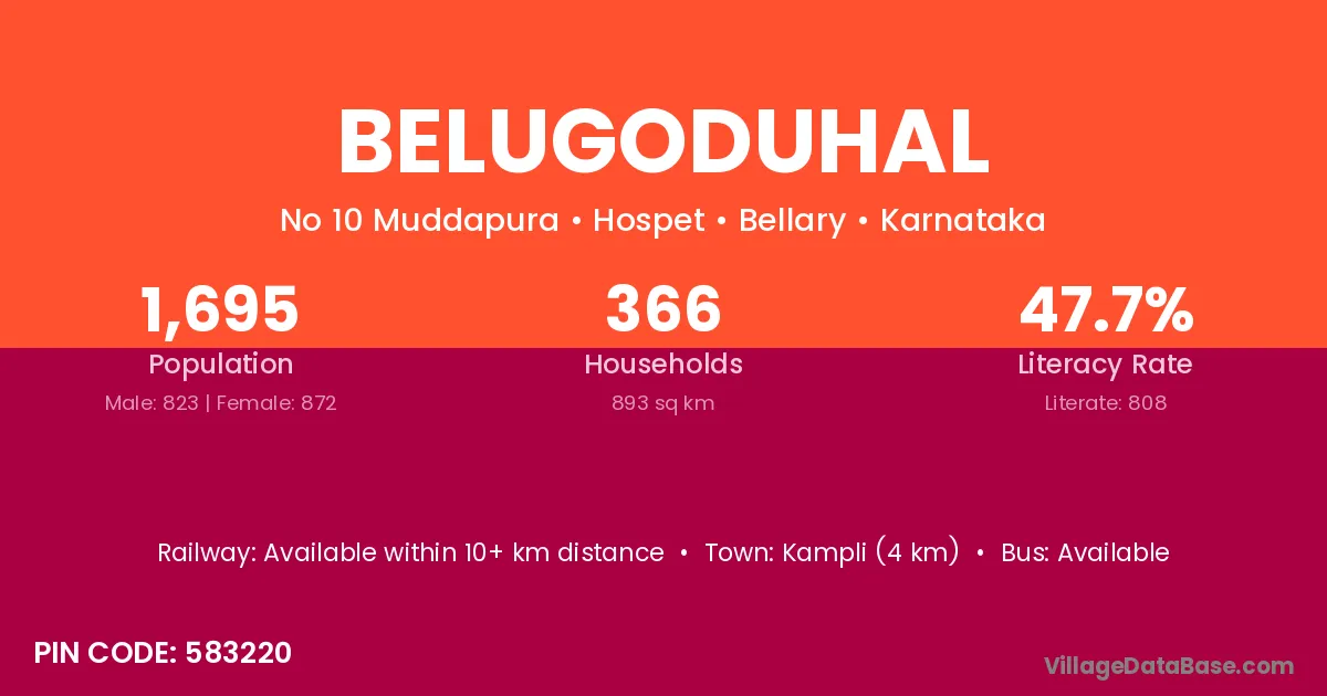 Kampli (4 km) is the nearest town to Belugoduhal village for major economic activities and is located approximately 4 km away.