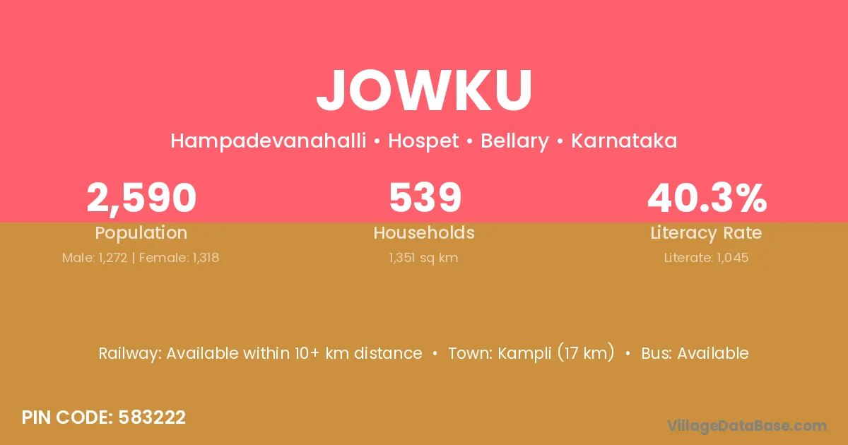 Kampli (17 km) is the nearest town to Jowku village for major economic activities and is located approximately 17 km away.