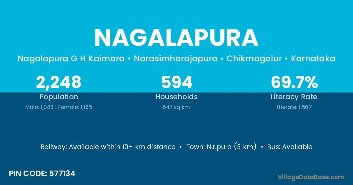 Hospet (23 km) is the nearest town to Nagalapura village for major economic activities and is located approximately 23 km away.