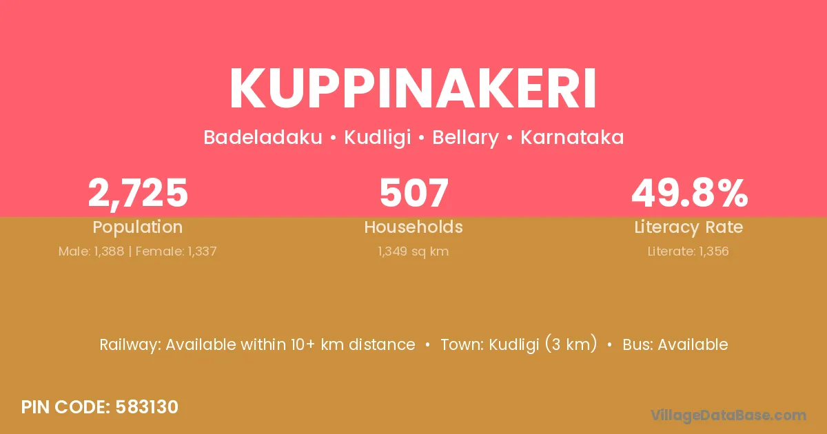 Kuppinakeri village has a total population of 2,725 people, of which 1,388 are males and 1,337 are females.